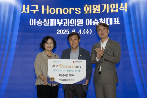 서구는 4일 이승철피부과의원 이승철 원장이 서구아너스의 81번째 회원으로 이름을 올렸다고 밝혔다. 이 원장은 이날 서구청 구청장실에서 김이강 서구청장과 광주사회복지공동모금회 관계자 등이 참석한 가운데 서구아너스 가입식을 가졌다.