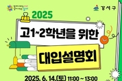 서울 강서구(구청장 진교훈)는 고등학교 1·2학년을 위한 2027∼2028학년도 대학 입시설명회를 오는 14일 개최한다고 밝혔다. 설명회는 오전 11시부터 오후 1시까지 2시간 동안 강서평생학습관 2층 대강당에서 열린다. 이번 설명회는 2027∼2028학년도 대입의 주요 변화와 최신 입시 흐름을 알리고, 학생과 학부모가 체계적인 진학 전략을 세우는 데 도움을 주기 위해 마련됐다. 특히, 2028학년도 입시는 '2022 개정 교육과정'이 처음 적용되는 해로, 성취평가제 확대, 수능 과목 구조 개편, 학생부 평가 방식 변화 등 입시환경의 큰 변화가 예고돼 있다. 설명회는 한가람고등학교 정태영 교사가 진행한다. 2027∼2028학년도 대학입시의 주요 변화와 2026학년도와의 차이점을 중심으로 실질적인 정보를 제공할 예정이다. 또한, 참가자들과 질의응답 시간을 통해 수험생과 학부모의 궁금증을 해소하고, 효과적인 입시 전략 수립에 도움을 줄 계획이다. 참여는 사전 신청자에 한하며, 강서구 내 고등학생과 학부모라면 누구나 신청할 수 있다. 참가 시청은 6월 5일부터 13