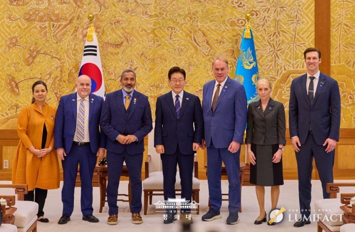 루미팩트 백라희 기자 | 이재명 대통령은 3월 31일 오후 청와대에서 아미 베라(Ami Bera) 하원 동아태소위원회 간사 등 공화·민주 양당 의원으로 구성된 미국 의회 코리아스터디그룹 대표단을 접견하고 최근 중동 전쟁, 한미관계, 한반도 문제 등에 대해 의견을 나눴다.