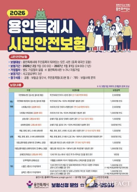 루미팩트 백라희 기자 | 용인특례시는 각종 재난과 사고로 피해를 본 시민의 생활 안정을 지원하기 위해 시민안전보험에 가입했다고 2일 밝혔다.