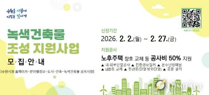루미팩트 백라희 기자 | 수원특례시가 2월 2일부터 27일까지 ‘2026년 녹색건축물 조성 지원사업’ 신청을 받는다.