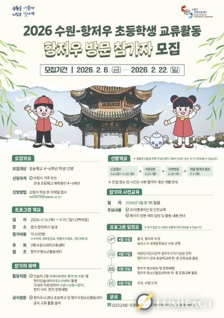 루미팩트 백라희 기자 | 수원특례시는 ‘2026 수원–항저우 초등학생 상호방문교류’에 참여할 초등학생 10명을 2월 22일까지 모집한다.
