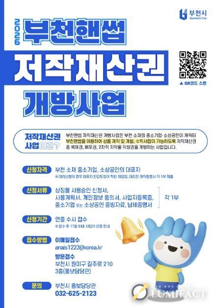 루미팩트 이아린 기자 | 부천시는 시 대표 캐릭터인 ‘부천핸썹’의 저작재산권 일부를 관내 중소기업과 소상공인에게 개방하는 ‘2026년도 부천핸썹 저작재산권 개방사업’을 추진한다고 13일 밝혔다.