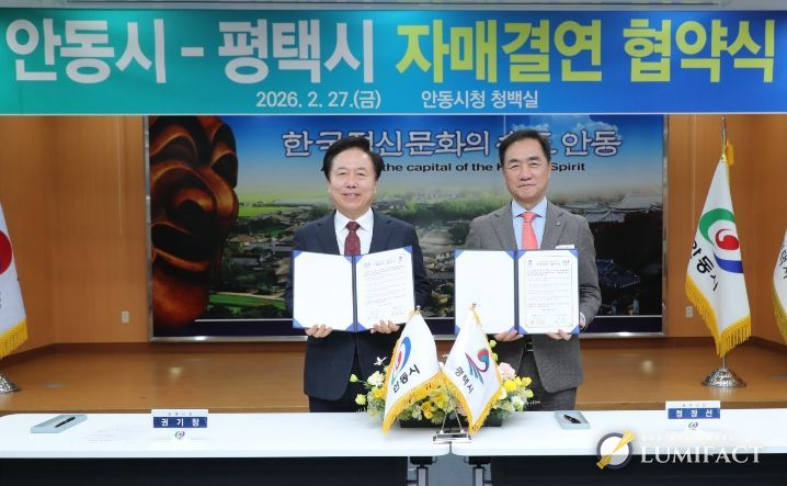 루미팩트 이아린 기자 | 경기도 평택시와 경상북도 안동시가 27일, 안동시청에서 자매결연 협약식을 갖고 상호 신뢰와 협력을 바탕으로 행정, 경제, 문화, 관광, 농업 등 다양한 분야의 교류 확대를 약속했다.