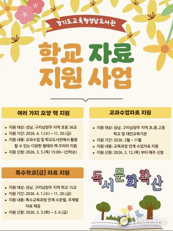 루미팩트 백라희 기자 | 경기도교육청성남도서관이 성남 및 구리·남양주 지역 학생들의 독서교육을 위해 䃳대 맞춤형 자료 지원 사업’을 운영한다.
