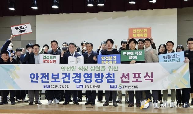 루미팩트 이아린 기자 | 군포산업진흥원은 지난 9일 청사 3층 컨벤션홀에서 기관 임직원이 참석한 가운데 '2026년 안전보건경영 선포식'을 개최했다.