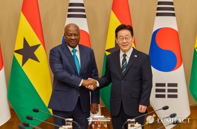 루미팩트 백라희 기자 | 이재명 대통령은 11일 오후 우리나라를 실무 방한한 존 드라마니 마하마 가나 대통령과 정상회담을 가졌다고 강유정 청와대 대변인이 서면 브리핑을 통해 밝혔다.