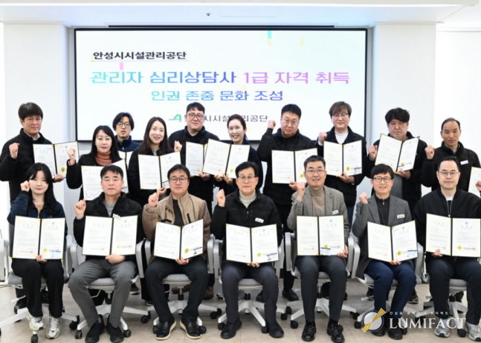 루미팩트 백라희 기자 | 안성시시설관리공단은 조직 내 인권존중 문화 정착과 관리자 상담 역량 강화를 위해 관리자 대상 심리상담사 자격 취득 교육을 실시하고 전원이 자격을 취득했다고 밝혔다.