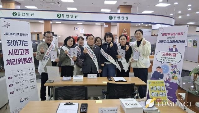 루미팩트 백라희 기자 | 성남시는 시민고충처리위원회(옛 시민옴부즈만)가 수정·중원·분당 3개 구청을 차례로 찾아가 지역 주민을 대상으로 고충 민원 상담을 진행한다고 19일 밝혔다.