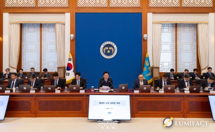 이 대통령은 이날 청와대에서 열린 제28차 수석보좌관회의 모두발언을 통해 "중동 전황의 불투명성이 확대되면서 원유와 일부 핵심 원자재에 대한 보다 적극적이고 장기적인 수급 관리 대책의 필요성이 커지고 있다"며 이 같이 밝혔다.