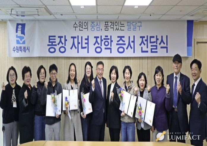 루미팩트 백라희 기자 | 수원시 팔달구는 지난 20일 구청 상황실에서 지역 사회 발전을 위해 헌신하는 통장들의 사기 진작과 노고를 격려하기 위한 ‘2026년 상반기 통장 자녀 장학 증서 전달식’을 개최했다.