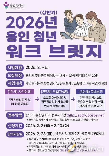 루미팩트 백라희 기자 | 용인특례시는 2월 2일부터 10일까지 상반기 청년 맞춤형 진로 설계 프로그램 참가자를 20명을 모집한다고 27일 밝혔다.
