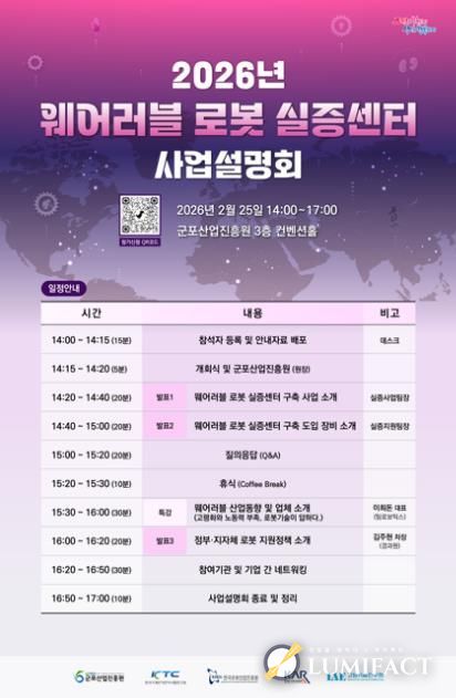 설명회 참석을 희망하는 기업 및 관계자는 행사 포스터 내 QR코드를 스캔하여 간편하게 사전 등록할 수 있으며 자세한 내용은 군포산업진흥원 홈페이지를 통해 확인할 수 있다.