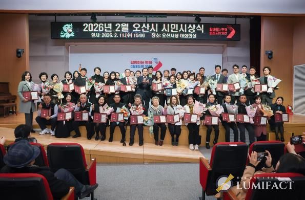 루미팩트 이아린 기자 | 오산시는 지난 11일 오산시청 대회의실에서 ‘2026년 2월 시민시상식’을 개최하고, 지역사회 발전과 이웃사랑 실천에 기여한 시민 46명을 대상으로 표창을 수여했다.