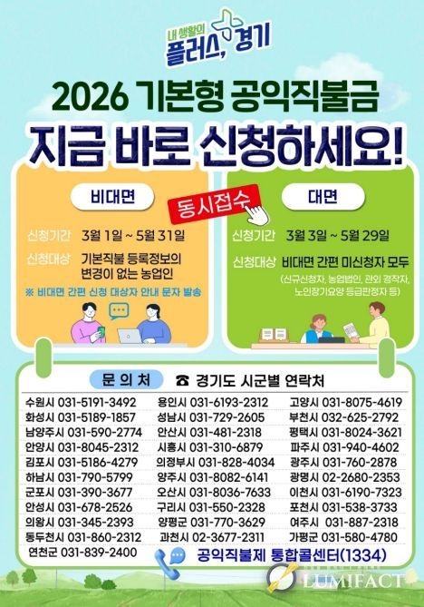 루미팩트 백라희 기자 | 경기도가 오는 5월 31일까지 ‘기본형 공익직불금’ 사업신청을 비대면 방식과 방문 방식으로 접수한다.