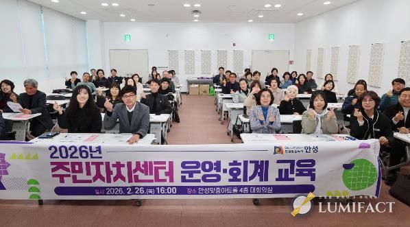 루미팩트 백라희 기자 | 안성시는 2월 26일 오후 4시 안성맞춤아트홀 4층 대회의실에서 15개 읍·면·동 주민자치 위원(회)장, 간사, 업무 담당 공무원 등 45명을 대상으로 ‘2026년 주민자치센터 운영·회계 교육’을 실시했다.