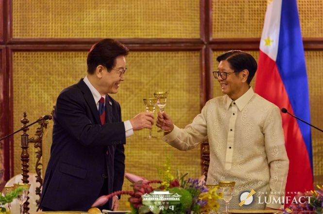 루미팩트 백라희 기자 | 필리핀을 국빈 방문 중인 이재명 대통령 부부는 3일 저녁, 페르디난도 로무알데즈 마르코스 주니어 대통령이 필리핀 말라카냥궁에서 주최한 만찬에 참석했다.