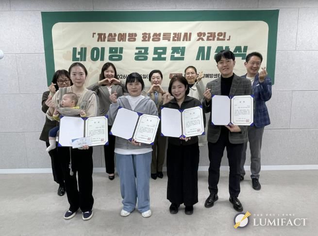루미팩트 이아린 기자 | 화성특례시 자살예방센터는 지난해 12월 8일부터 12월 19일까지 진행한 ‘화성특례시 자살예방 핫라인 네이밍 공모전’에 총 174점의 작품이 출품됐으며, 심사를 거쳐 5개 수상작을 선정하는 등 시민들의 높은 관심 속에 공모전을 마무리했다고 밝혔다.