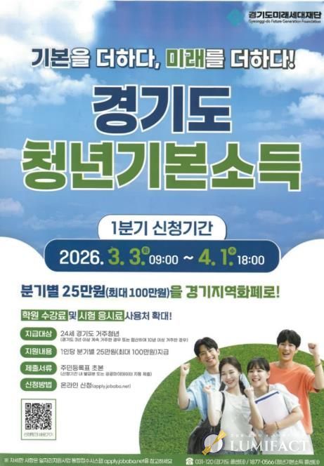 루미팩트 이아린 기자 | 오산시는 24세 청년에게 분기별 25만 원을 지급하는 ‘청년기본소득’ 2026년 1분기 신청을 3월 3일부터 4월 1일까지 접수한다고 밝혔다.