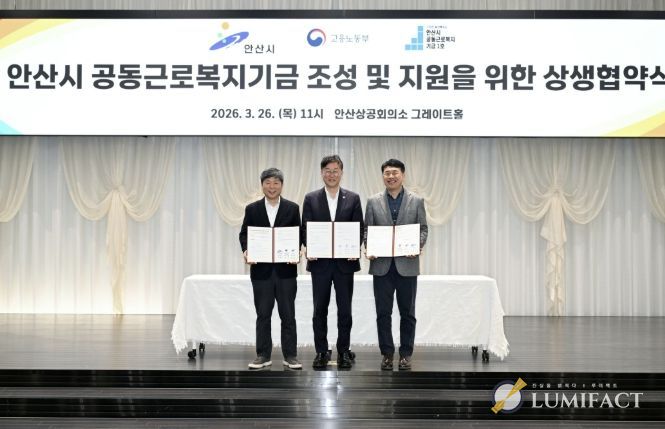루미팩트 이아린 기자 | 안산시는 지난 26일 안산상공회의소 그레이트홀에서 경기지방고용노동청 안산지청, 안산시 공동근로복지기금 1호 법인과 함께 ‘안산시 공동근로복지기금 조성 및 지원을 위한 상생협약’을 체결했다고 27일 밝혔다.