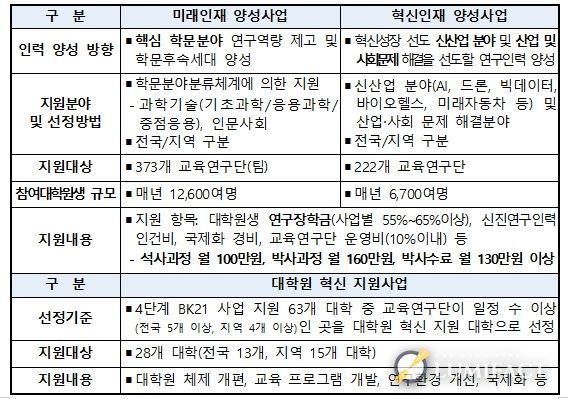 4단계 두뇌한국(BK)21 사업(2020년~2027년)은 세계 수준의 연구중심대학 육성과 대학원 혁신을 목표로 운영되고 있으며, 매년 약 2만 명의 대학원생과 신진 연구자를 지원하고 있다.