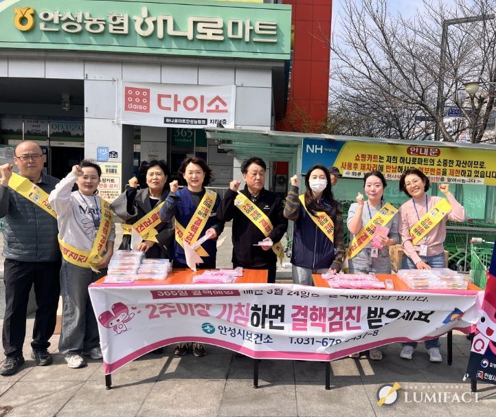 루미팩트 백라희 기자 | 안성시보건소는 ‘제16회 결핵 예방의 날(3월 24일)’을 맞아 지난 3월 25일 관내 유동 인구가 많은 안성농협 하나로마트 정문 및 안성시장 인근에서 ‘결핵 예방 캠페인’을 실시했다고 밝혔다.