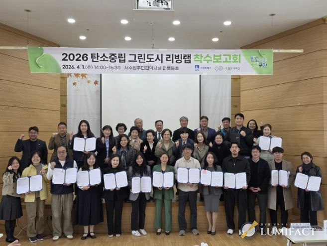 루미팩트 백라희 기자 | 수원특례시와 수원도시재단이 1일 서수원주민편익시설에서 ‘2026년 탄소중립 그린도시 리빙랩 착수보고회’를 열고, 탄소중립 그린도시 리빙랩 사업의 추진 방향을 알렸다.