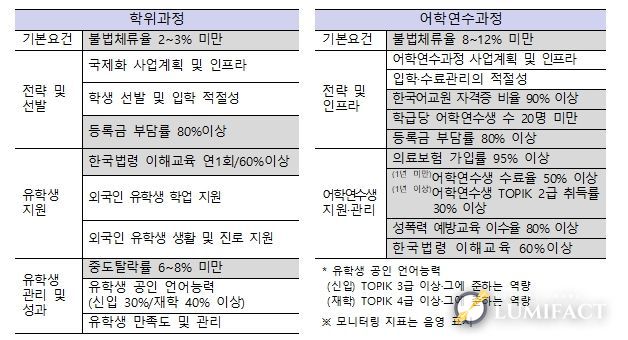 특히 문서 조작이나 중대 위반 사항이 적발될 경우, 기존 인증 취소는 물론 사증 발급이 제한되는 ‘비자정밀심사대학’으로 지정하고, 최대 3년간 비자 발급 제한 등 강력한 불이익을 부과하여 부실 운영의 고리를 끊어낼 방침이다.