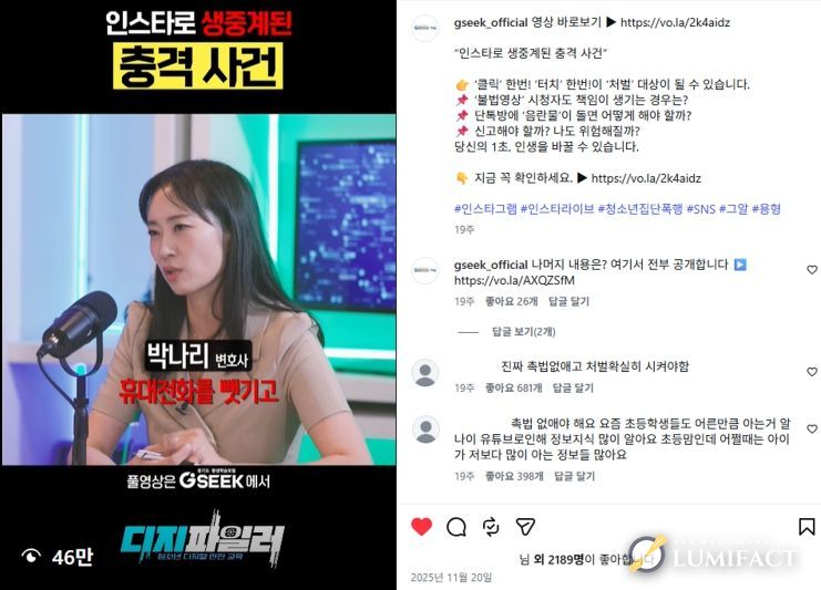 특히 인스타그램에서는 ‘인스타로 생중계된 충격사건’이 약 46만 회 조회되며 높은 관심을 끌었고, 유튜브에서도 ‘텔레그램 유저들 주목! 성범죄자에 안 낚이는 방법 공개’ 콘텐츠가 약 3만 회 조회되는 등 주요 채널별로 이용자 반응이 이어졌다. 지난해 게시된 숏폼 100편의 누적 조회수는 약 350만 회에 달한다.