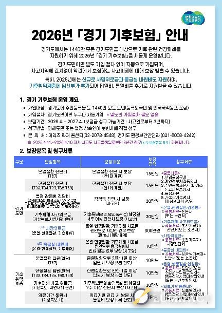 올해 경기 기후보험은 도민의 의료비 부담을 직접적으로 덜어주기 위해 보장 금액은 올리고, 신규 보장 항목도 추가했다.