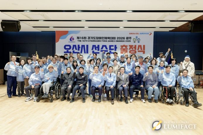 루미팩트 이아린 기자 | 오산시장애인체육회는 ‘제16회 경기도장애인체육대회 2026 광주’에 참가하는 오산시 선수단 출정식을 지난 10일 오산오색문화체육센터에서 개최했다고 밝혔다.