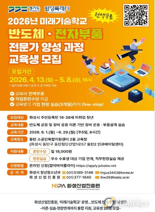 루미팩트 백라희 기자 | 화성산업진흥원(원장 전병선)에서 지역 기술 인력 양성을 위해 ‘2026년 미래기술학교’를 추진하고 반도체·전자부품 전문가 양성과정 교육생을 모집한다.