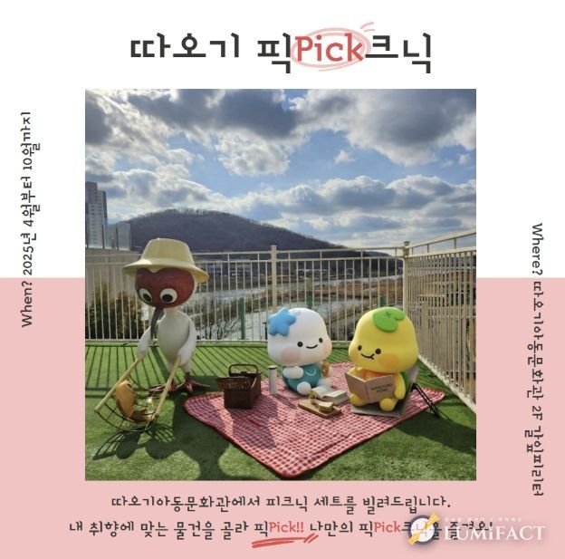 루미팩트 백라희 기자 | 시흥시 따오기아동문화관은 가족 단위 관람객의 여가 활성화를 위해 야외 체험 프로그램으로 ‘따오기픽(pick)크닉’을 오는 4월 18일부터 10월 말까지 운영한다.