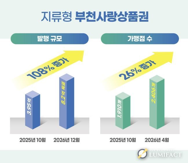 루미팩트 이아린 기자 | 부천시가 지역경제 선순환을 위해 도입한 지류형 지역화폐 ‘부천사랑상품권’이 시행 반년 만에 발행 규모와 사용처가 모두 꾸준히 늘며 지역 상권에 활기를 더하고 있다.