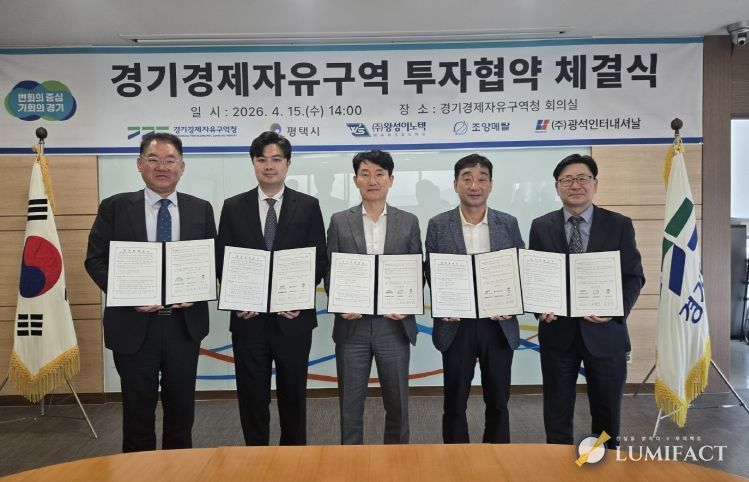 루미팩트 백라희 기자 | 경기경제자유구역청은 15일 경기경제청 8층 회의실에서 평택시 및 자동차부품, 반도체, 화학 제조기업 5개사(㈜왕성이노텍, 조양메탈㈜, ㈜광석인터내셔날/그 외 2개 기업 서면 협약)와 평택 포승(BIX)지구 산업시설용지 투자협약을 체결했다.