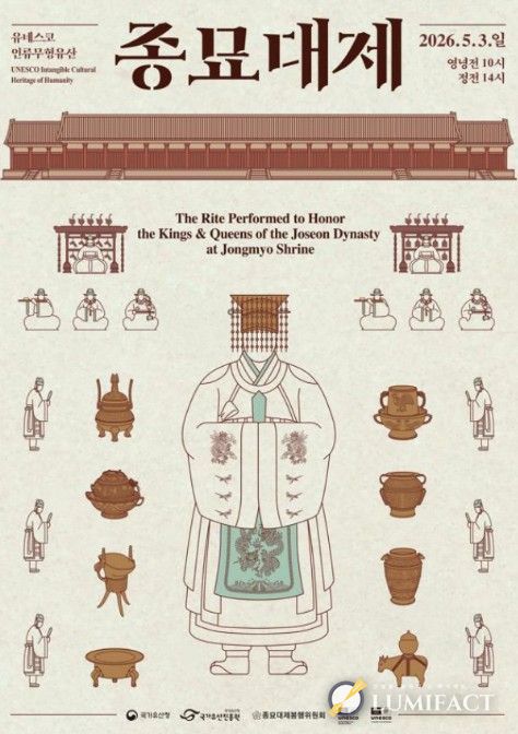 루미팩트 백라희 기자 | 국가유산청은 산하 국가유산진흥원, 종묘대제봉행위원회와 5월 3일 오후 2시 종묘(서울 종로구)에서 '2026년 종묘대제'를 봉행한다.