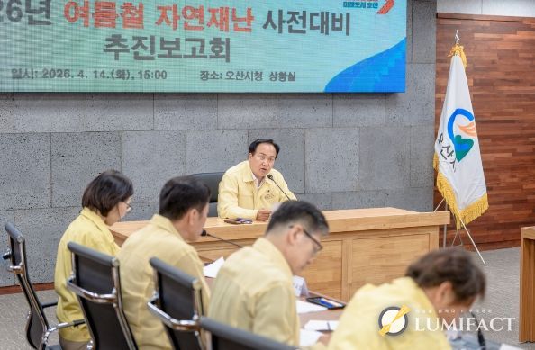 루미팩트 이아린 기자 | 오산시는 지난 14일 기상이변에 따른 극한 호우 등 여름철 자연재난으로부터 시민의 생명과 재산을 보호하기 위해 ‘2026년 여름철 자연재난 사전대비 추진보고회 및 현장점검’을 실시하고 본격적인 안전 점검 체계에 돌입했다고 밝혔다.