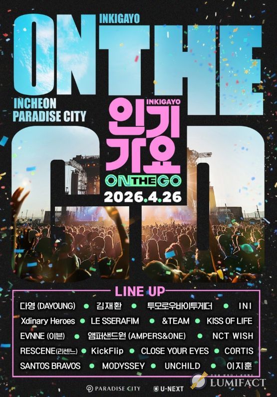 오는 4월 26일(일) 인천 파라다이스시티에서 개최되는 ‘인기가요 ON THE GO’는 SBS 대표 음악 프로그램 ‘인기가요’의 스페셜 공연 프로젝트로, 기존 스튜디오 중심의 음악 방송을 넘어 팬들이 있는 곳으로 직접 찾아가는 콘셉트로 기획됐다. 생방송 현장의 에너지와 공연의 몰입감을 결합한 새로운 형태의 K-POP 공연으로, 아티스트와 관객이 더욱 가까이 호흡하는 특별한 경험을 선사할 예정이다.