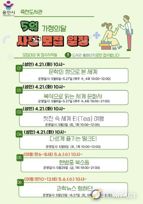 루미팩트 백라희 기자 | 용인특례시 죽전도서관은 오는 5월 가정의 달을 맞아 ‘2026년 5월 독서문화행사’를 개최한다.