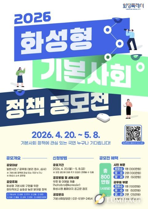루미팩트 백라희 기자 | 화성특례시는 시민 참여 기반을 확대하고, 실효성 있는 기본사회 정책을 발굴하기 위해 '2026년 화성형 기본사회 정책 공모전'을 개최한다고 밝혔다.