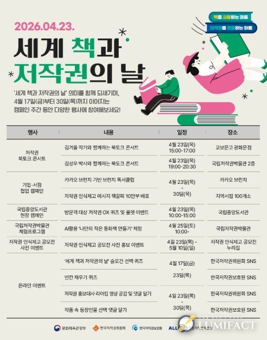 루미팩트 백라희 기자 | 문화체육관광부는 한국저작권위원회, 한국저작권보호원과 함께 ‘세계 책과 저작권의 날’을 맞이해 4월 17일부터 30일까지 ‘저작권 보호 캠페인’을 추진한다. 이를 통해 책과 저작권이 지닌 소중한 가치를 되새기고, 창작자의 권리를 존중하는 문화를 국민 일상에 확산할 계획이다.
