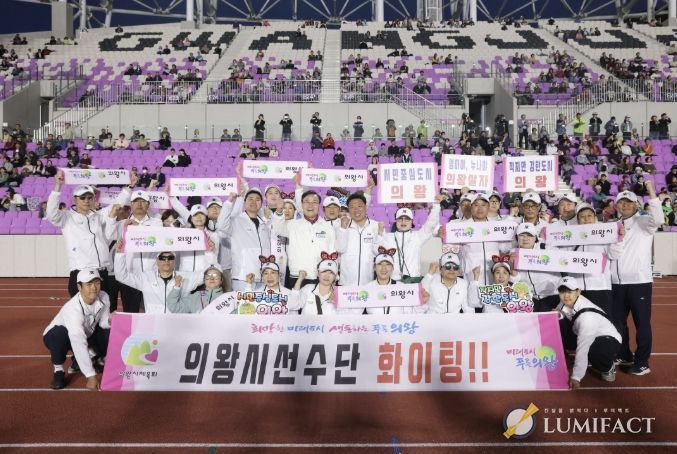 루미팩트 이아린 기자 | 의왕시 선수단이 4월 16일, 광주시 G-스타디움에서 열린 '제72회 경기도체육대회 2026 광주' 개회식에 참석해 앞으로 치러질 경기에서의 선전을 다짐했다.