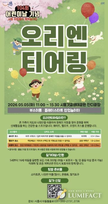 루미팩트 백라희 기자 | 시흥시는 제104회 어린이날을 맞아 5월 5일 갯골생태공원 잔디광장에서 아동과 가족이 함께 즐길 수 있는 ‘5월 플레이스타트 팝업놀이터’를 운영한다. 이번 행사는 시흥시 어린이날 기념행사의 하나로 마련돼 행사장을 찾은 가족들에게 다채로운 프로그램으로 즐거움을 선사할 예정이다.