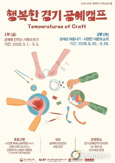 루미팩트 백라희 기자 | 한국도자재단이 오는 5월 1일부터 경기공예창작지원센터(여주) 일원에서 체험·전시·이벤트를 결합한 참여형 프로그램 ‘2026 행복한 경기 공예 캠프’를 개최한다.