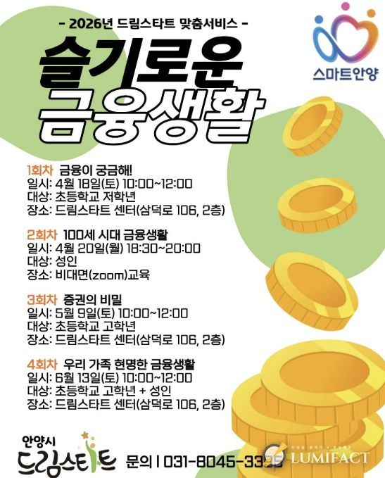 안양시 관계자는 “아이들이 돈의 가치를 올바르게 이해하고 관리하는 능력은 성인이 됐을 때 자립의 밑거름이 되는 중요한 소양”이라며, “앞으로도 아이와 가족이 함께 성장할 수 있는 체험형 금융 프로그램을 지속해서 확대해 나가겠다”고 말했다.