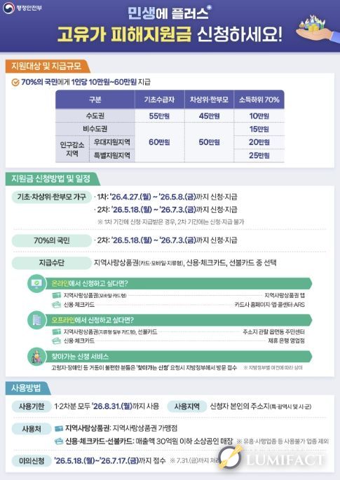 이번 지원금은 고유가·고환율·고물가로 어려움을 겪는 시민들의 생활 안정을 돕고, 지역 내 소비를 촉진해 소상공인과 자영업자의 매출 회복에도 힘을 보태기 위한 조치다.