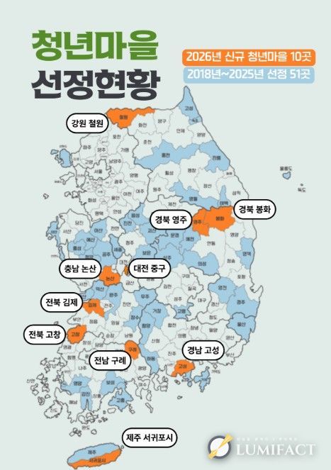 행정안전부는 전국 141개 팀이 치열한 경합을 벌여, 지역의 특색을 살려 청년 자립을 이끌 ‘2026년 청년마을’ 10곳을 최종 선정했다고 밝혔다.
