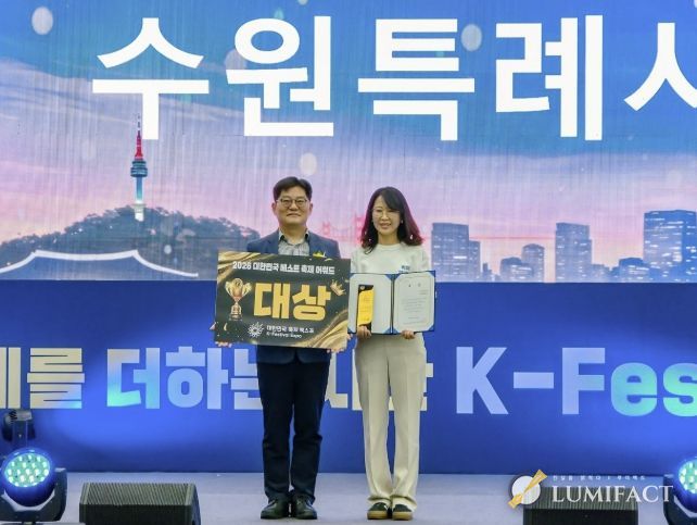 루미팩트 백라희 기자 | 수원특례시가 ‘제6회 대한민국 축제 엑스포 베스트 축제 어워드’에서 기초자치단체 부문 대상을 받았다. 시상식은 19일 수원컨벤센센터에서 열렸다.