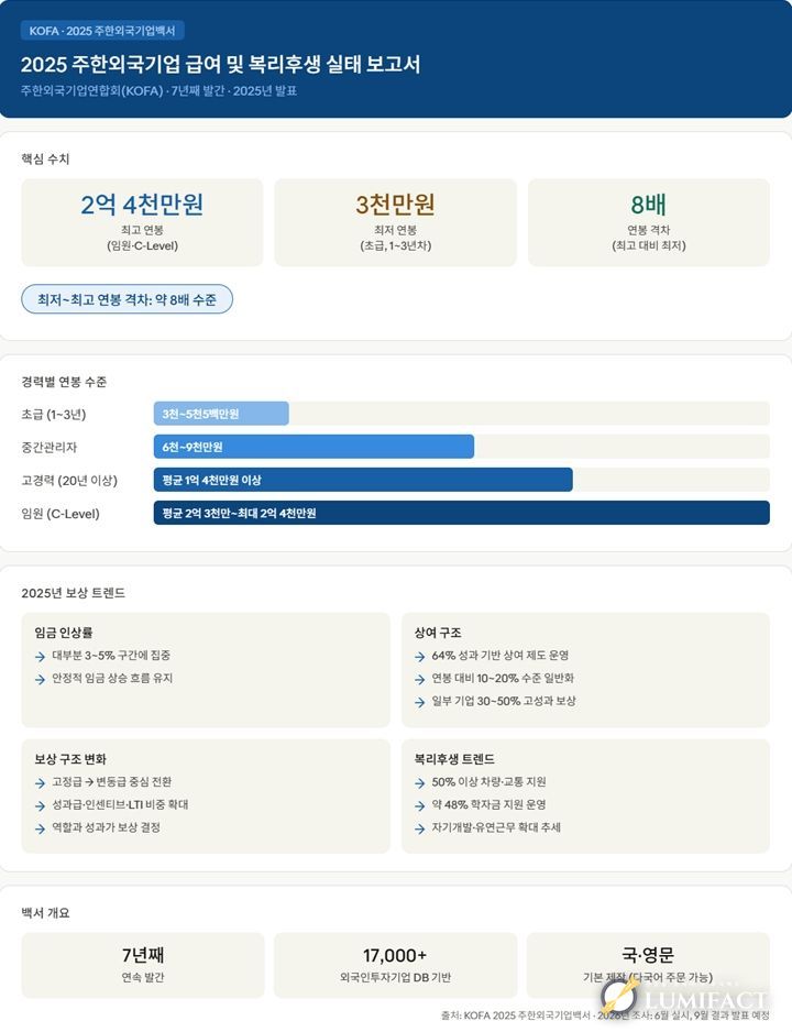 Salaries at Foreign-Invested Companies in Korea Reach KRW 240 Million at the Top and KRW 30 Million at the Bottom… 8-Fold Gap - KOFA Releases “2025 White Paper on Foreign-Invested Companies in Korea” (Enhanced Edition)