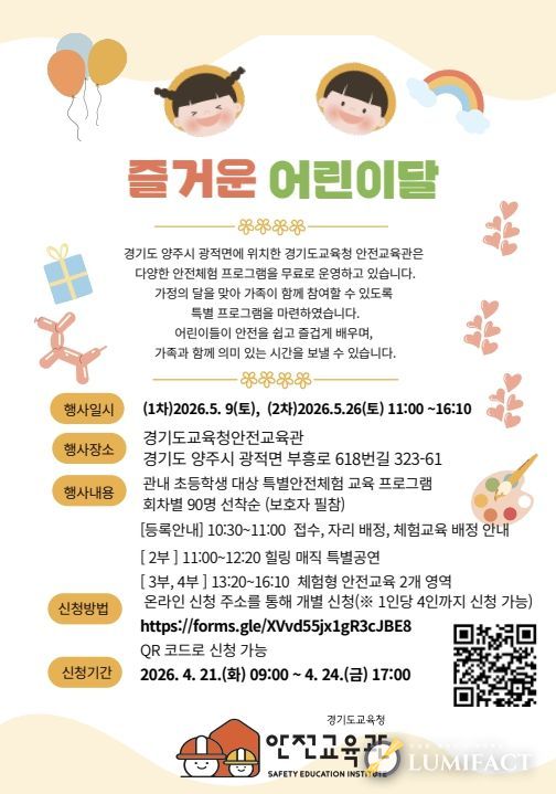루미팩트 백라희 기자 | 경기도교육청안전교육관이 가정의 달을 맞아 가족이 함께 참여해 안전의 중요성을 쉽고 즐겁게 배울 수 있도록 ‘가정의 달 안전교육 특별 프로그램’을 운영한다.